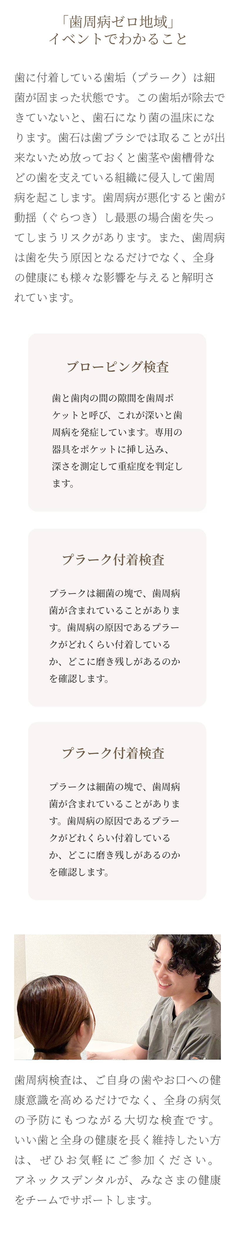 歯周病検査は、ご自身の歯やお口への健康意識を高めるだけでなく、全身の病気の予防にもつながる大切な検査です。